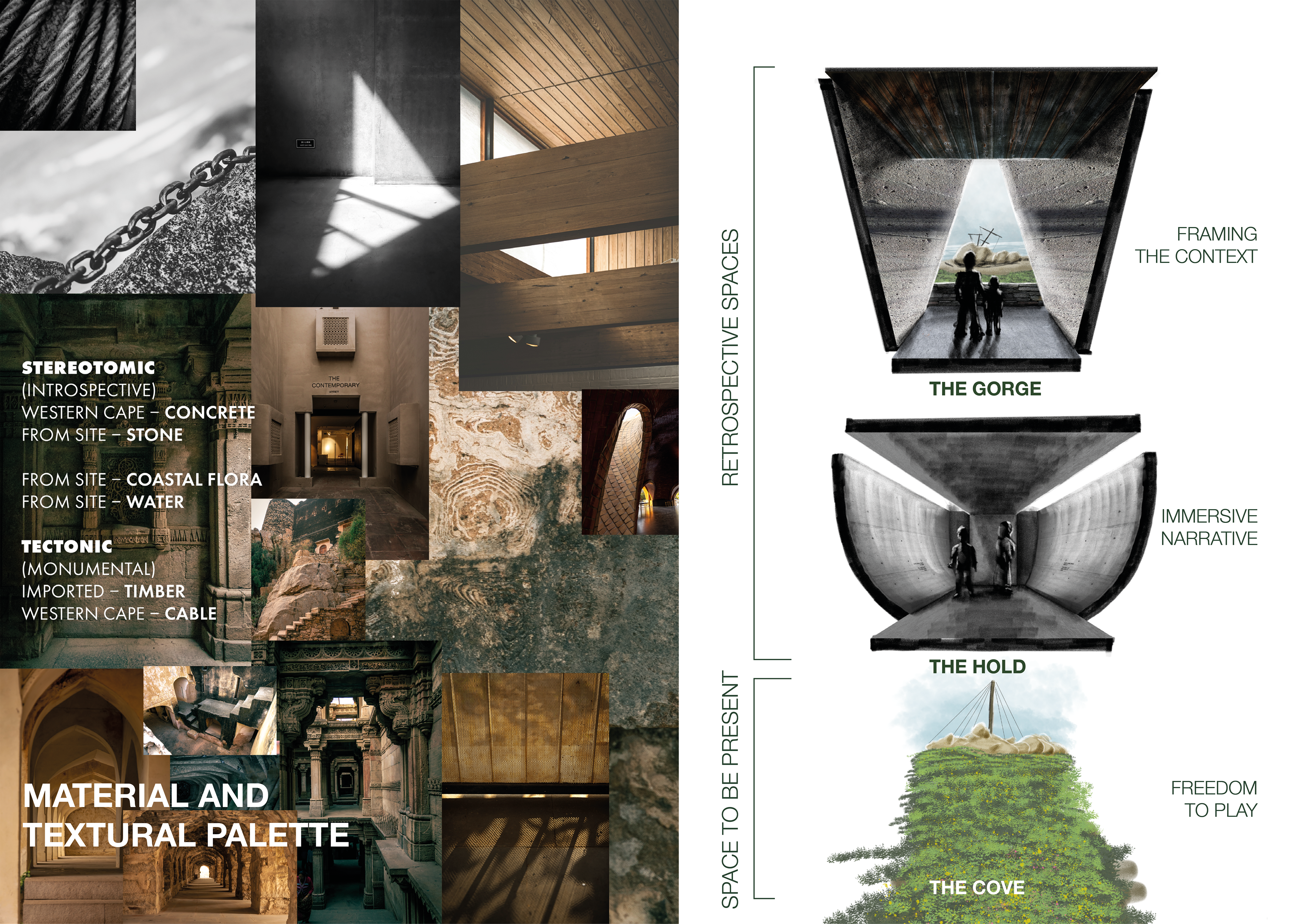 Heritage Cove is a transformative Cape History Museum, hidden beneath the landscape of Maiden’s Cove, Cape Town. The museum reveals how the evolution of the coastline has shaped the identity of the Cape and all it’s citizens. Visitors are invited to descend into a time before the first people and bear witness to every era unfolding as an informant of who each of us are and where we stand today. We are further invited to contemplate and discuss our role in shaping a transformative future for ourselves and the Cape at large at the futuring centre.
