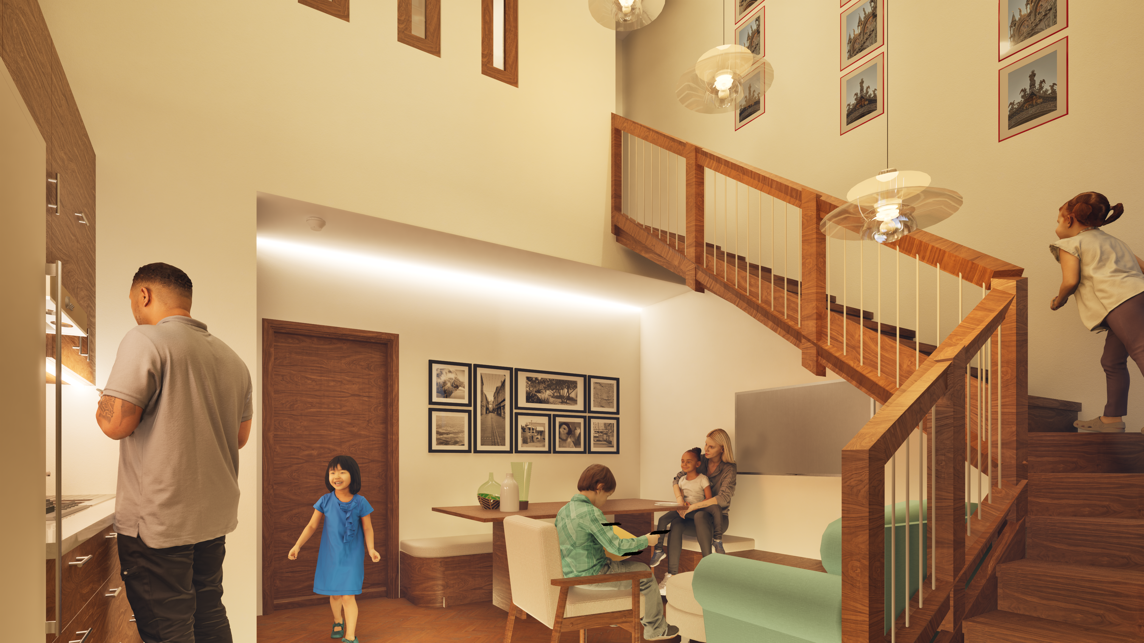 A circular rooftop garden walk, punctuated by picnic spots and vegetable gardens, extends community life upward. Within, double-volume duplex apartments maximise daylight and ventilation, creating a generous sense of home. Tafelberg Terraces blends urban intensity with domestic warmth, offering an inclusive and connected model for equitable living in Sea Point.